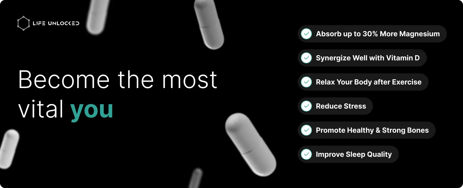VITALITY offers a unique combination of 2 types of highly absorbable magnesium + Vitamin D3 + Vitamin K2 in one capsule which makes it easy for daily use. If you purchased each of VITALITY's compounds separately at this quality, it would cost at least double the amount.